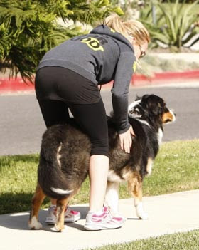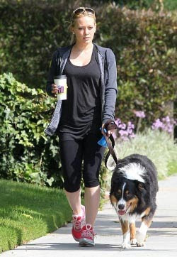 Hilary Duff byla v sobotu na procházce se psem.Hilaryin pes se jmenuje Dubois a je 3-roky starý Bermese salašnický pes. Hilary ho zachránila asi před rokem.